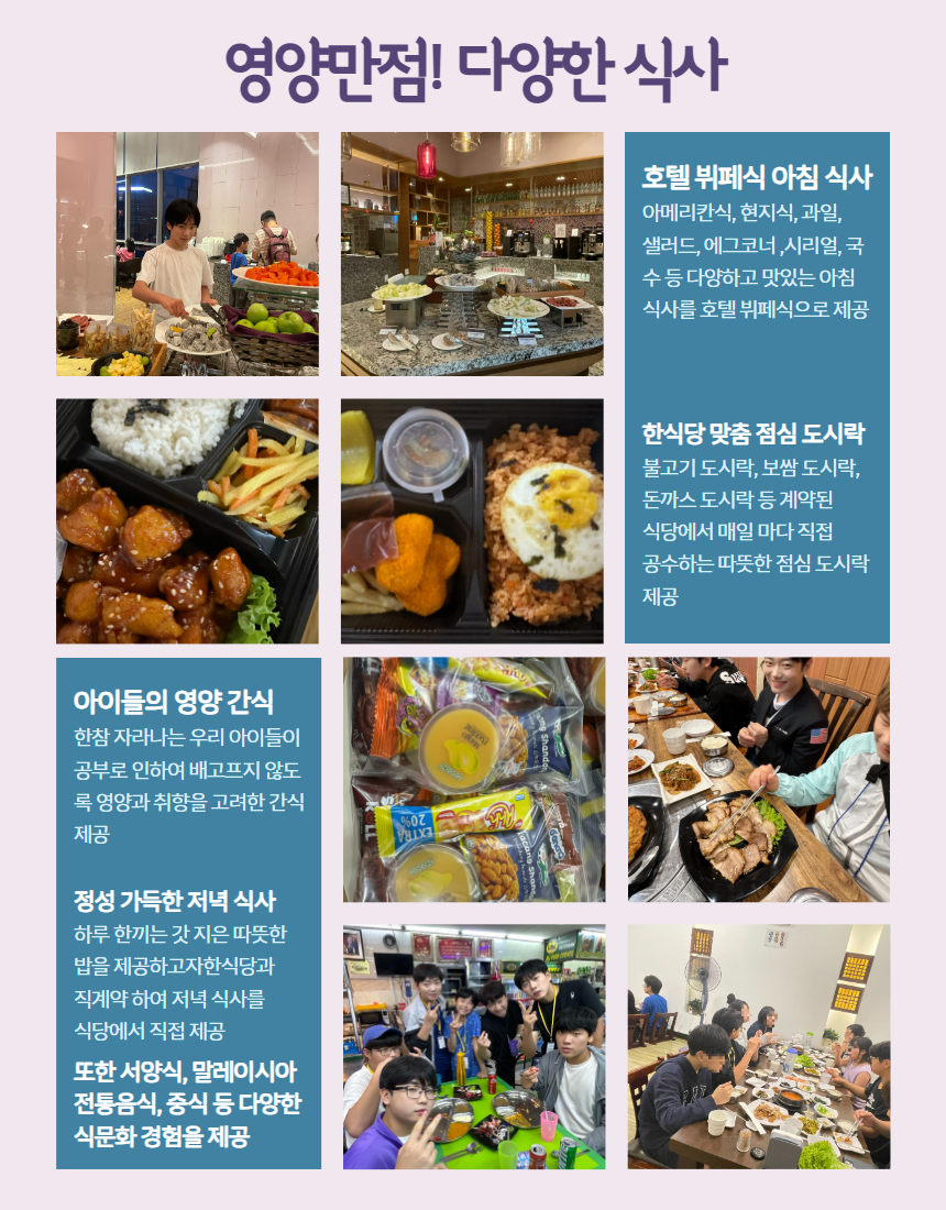📌 안전하고 청결한 호텔숙박+세심하게 신경쓴 다양한 식단의 1일 3식&1간식 식사 제공