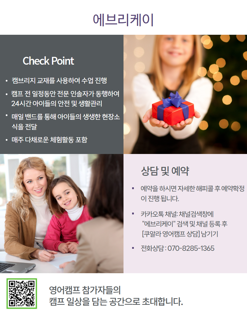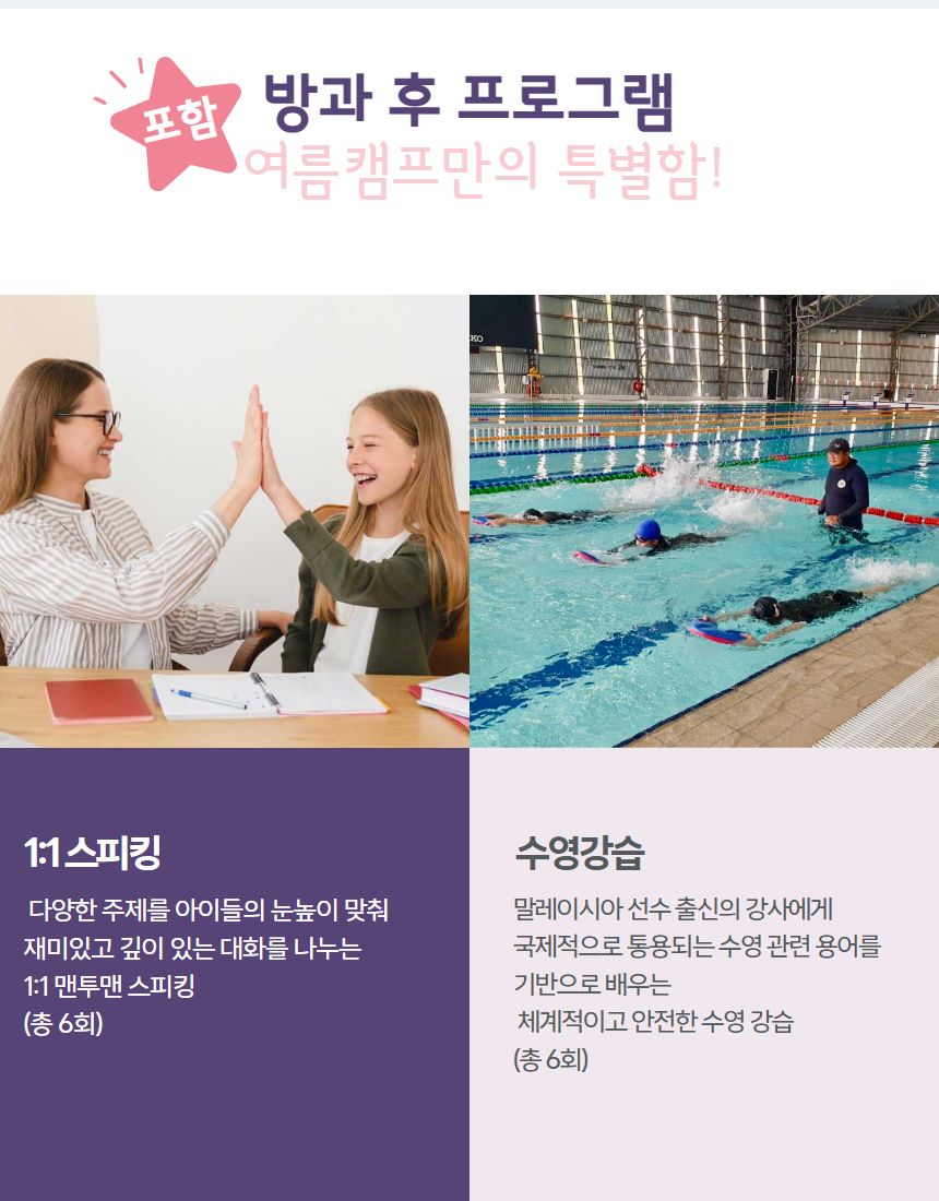 ▶ 여름방학! 영어캠프의 특별한 혜택! 방과후 1:1 스피킹 & 영어수영강습 포함!!