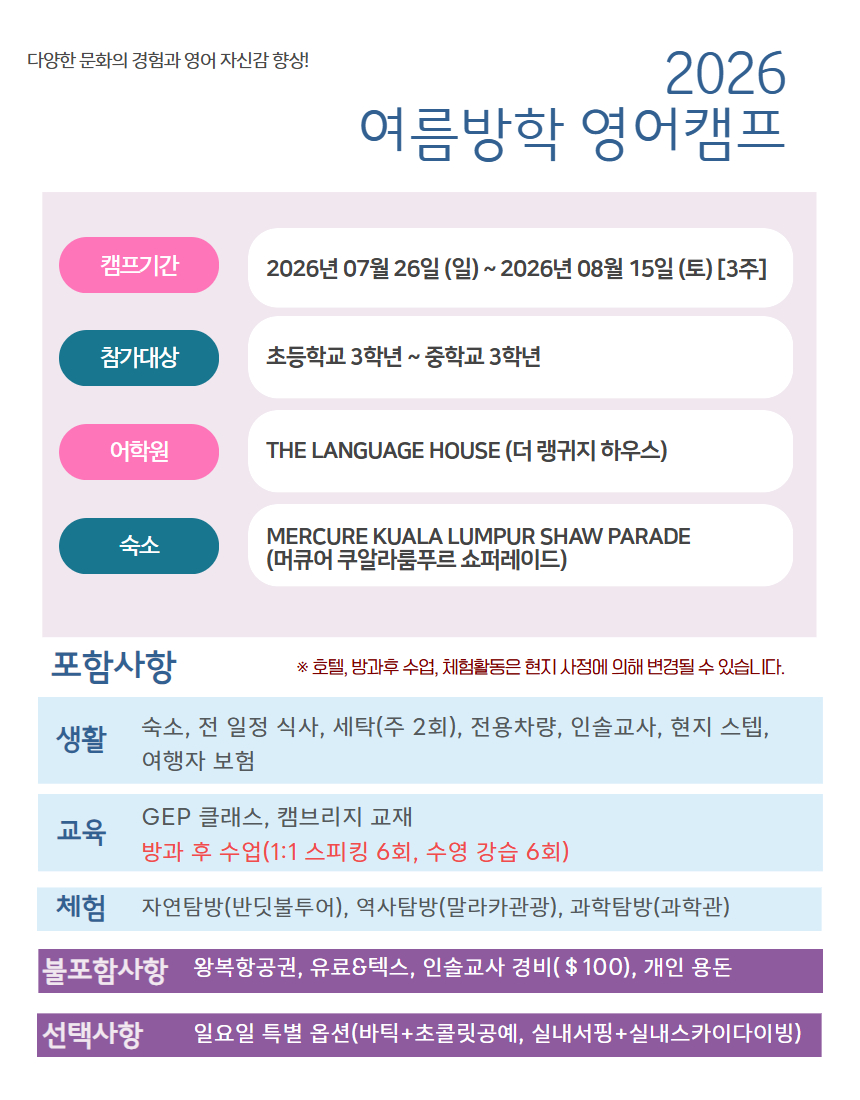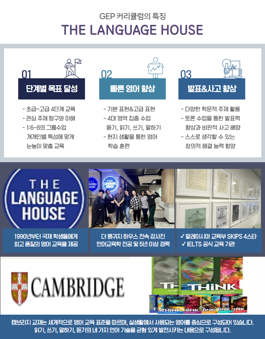 📌 말레이시아 현지 교육부 인정 우수 어학연수 기관인 더 랭귀지하우스에서 체계적인 GEP 캠프 진행