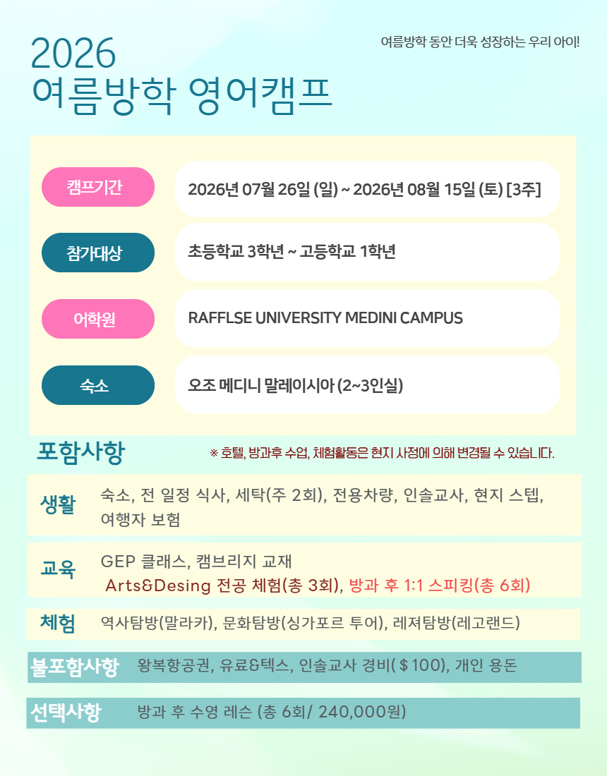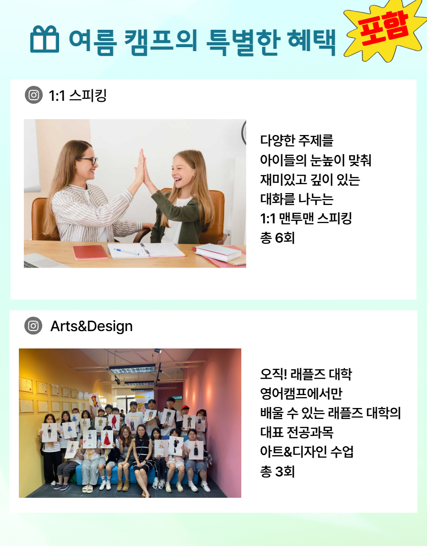 ▶ 여름방학! 영어캠프의 특별한 혜택! 방과후 1:1 스피킹 수업 포함!!