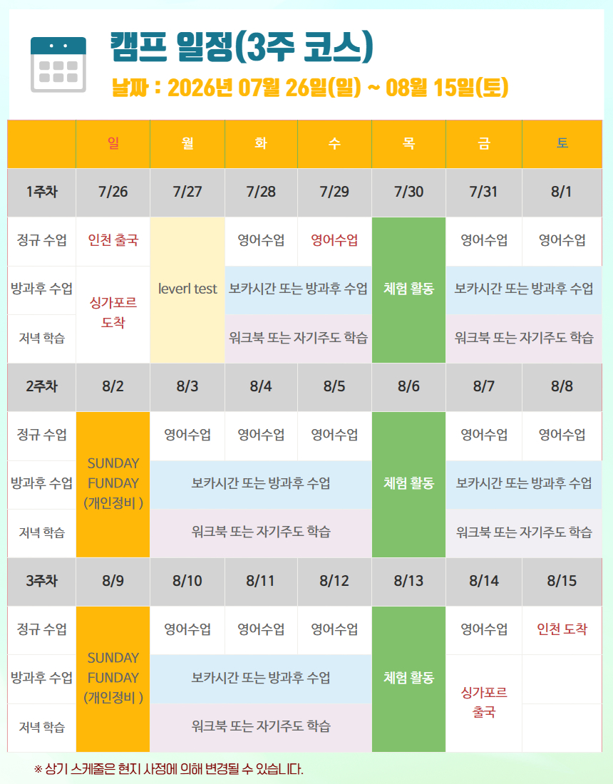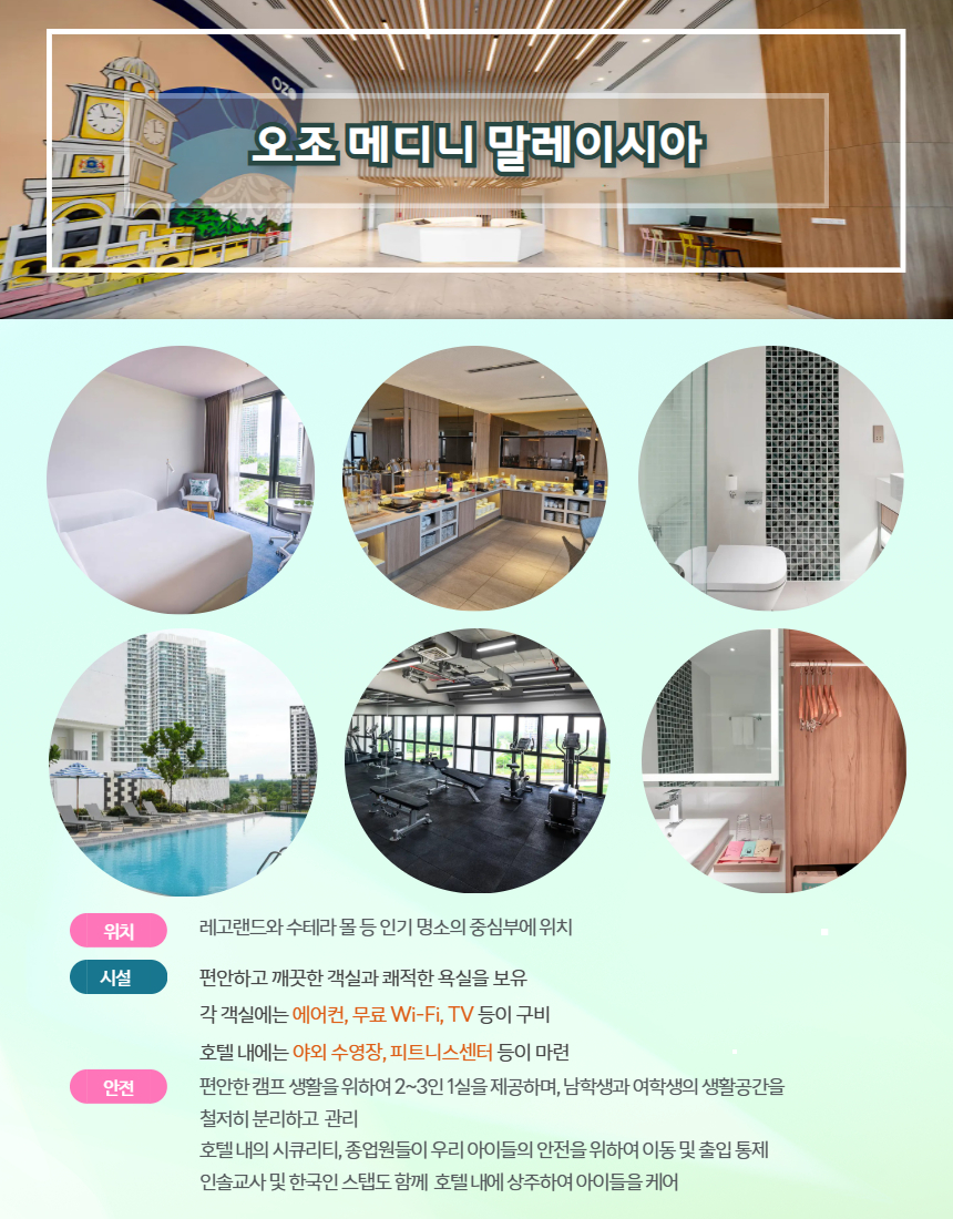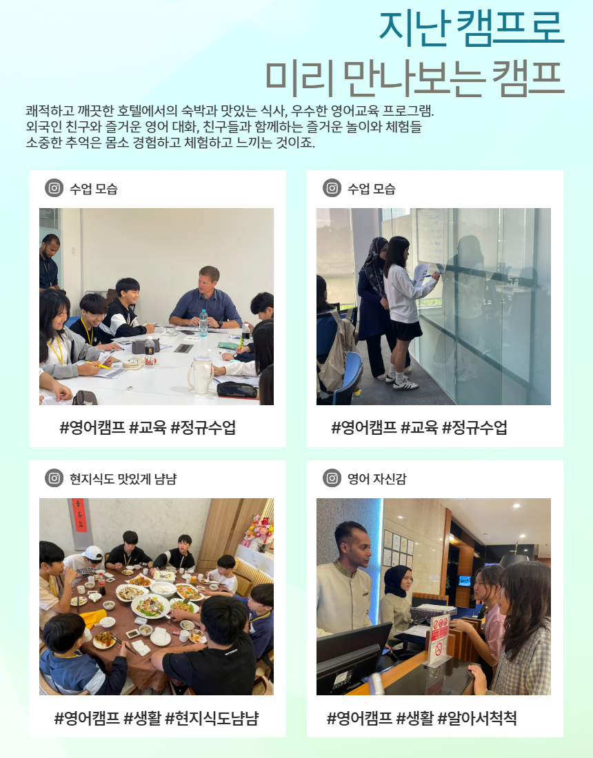 🏆 4성급 호텔 숙소에서 쾌적하고 편안하게 , 식사, 어학원 교육과 방과 후 수업 + 매주 목&일요일 탐방과 체육활동 프로그램까지 포함된 상품!!