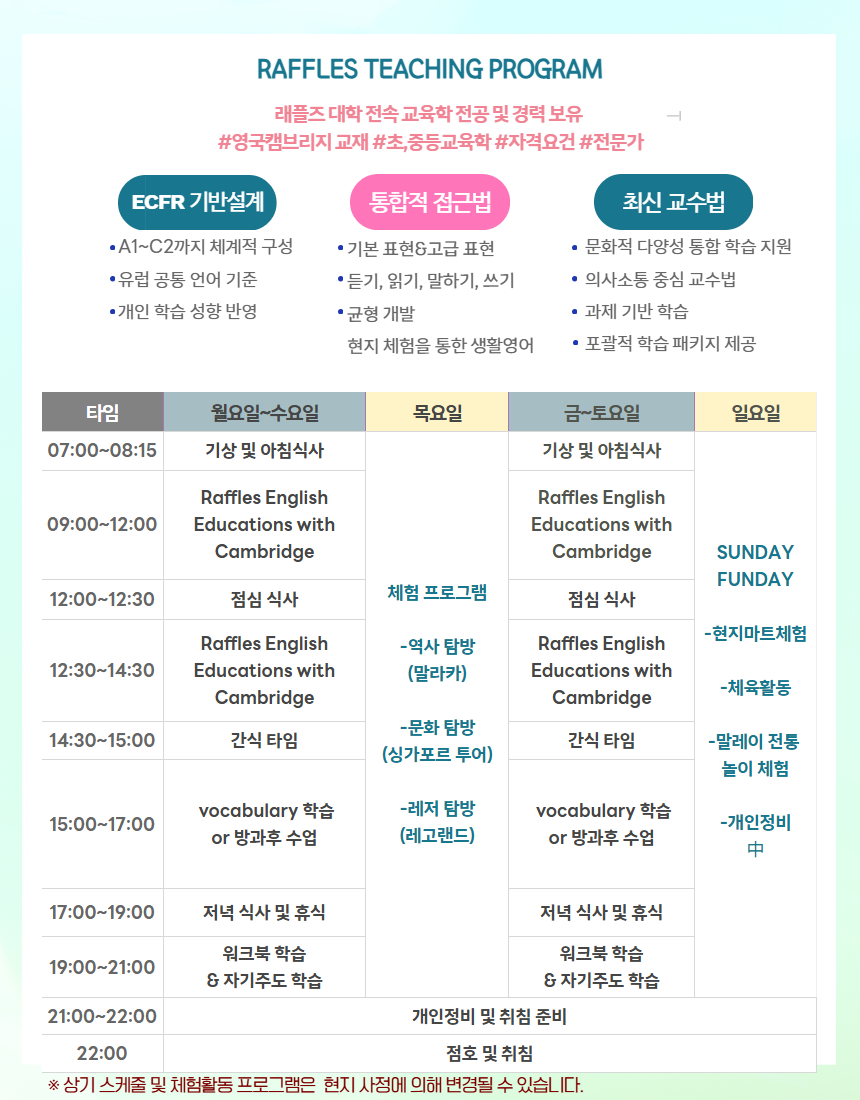 🏆 말레이시아 래플즈대학 캠퍼스에서 캠브리지커리큘럼을 활용한 래플즈 티칭영어교육