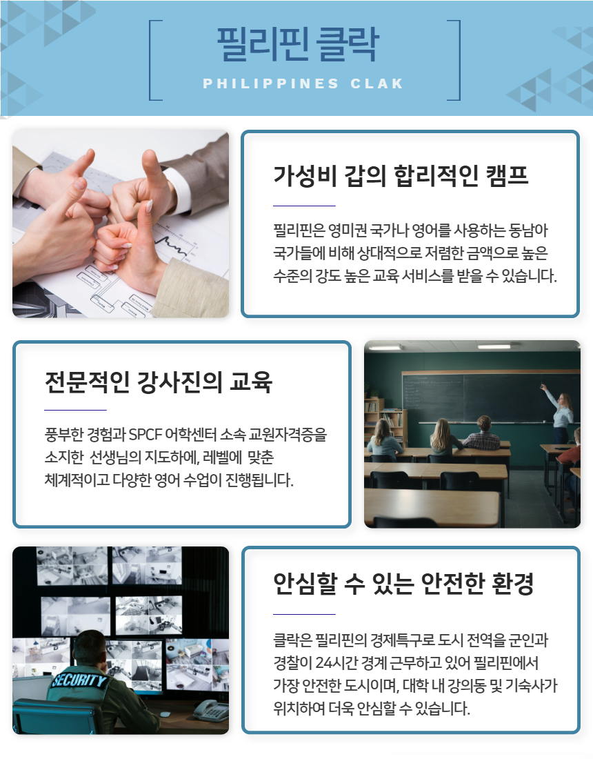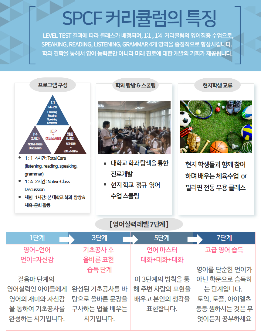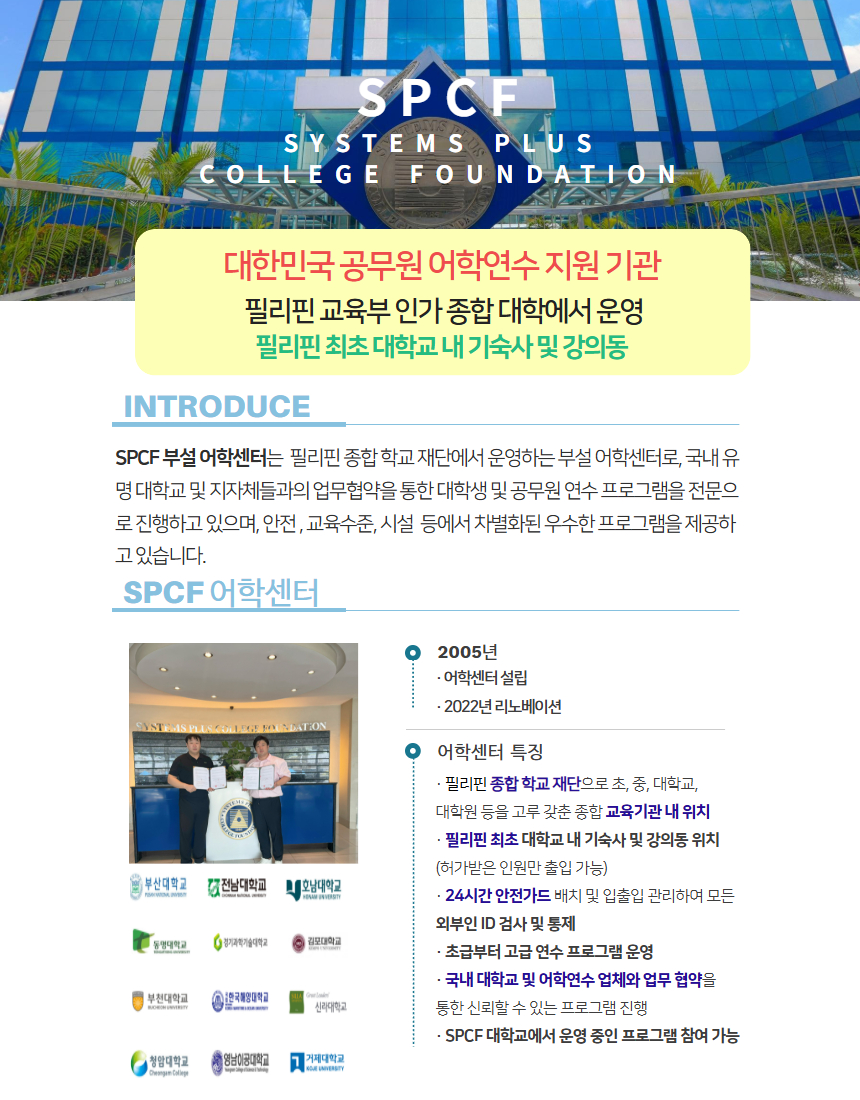 📍. SPCF 종합 학교 재단의 부설 어학원으로 캠퍼스 내 강의동 및 기숙사, 급식실이 위치하여 안심케어