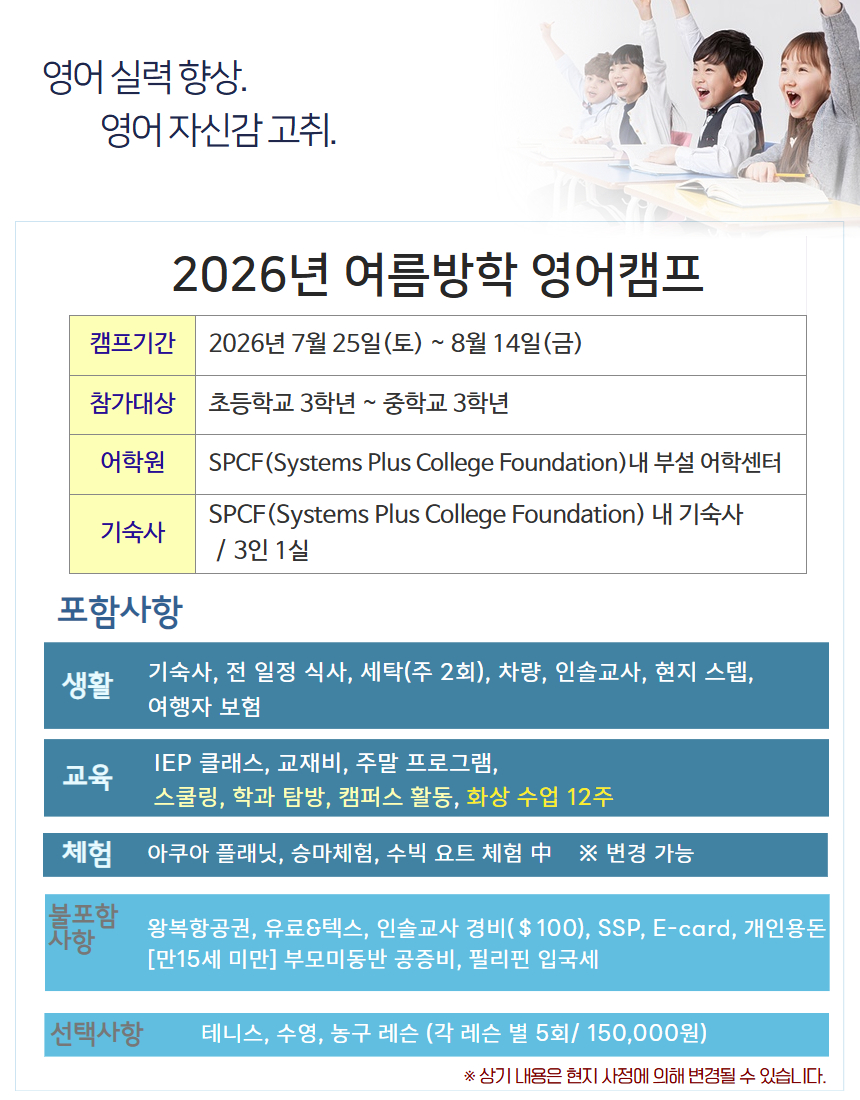 🎉 여름캠프만의 특별한 혜택! 화상수업 12주 포함!!