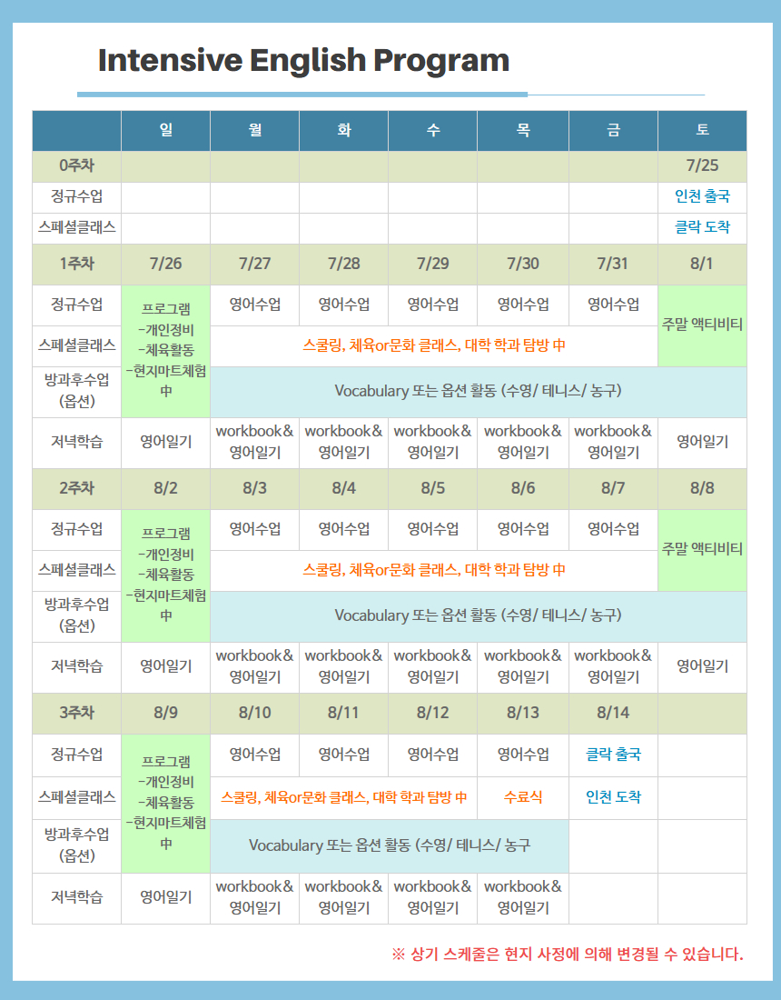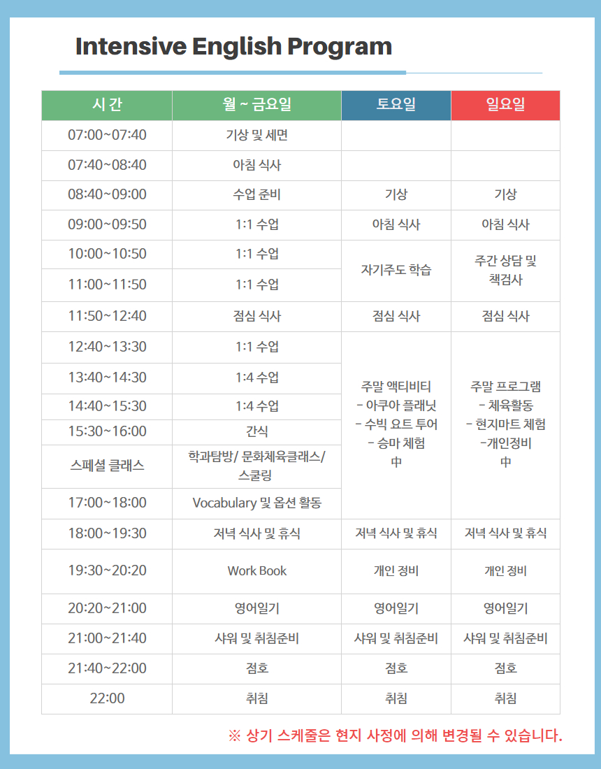 📍. 숙소, 식사, IEP 클래스+주말 프로그램까지 포함된 상품!!